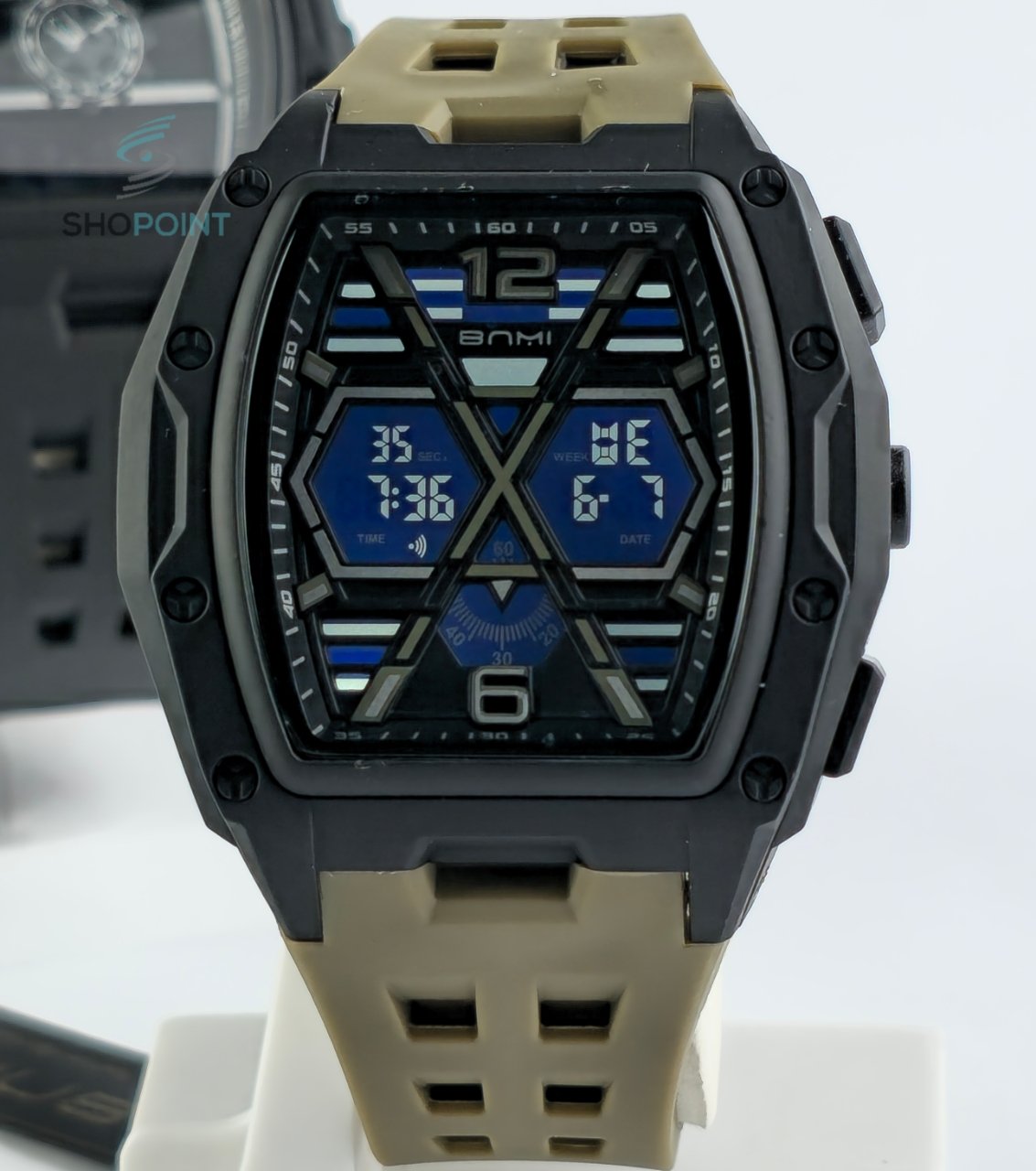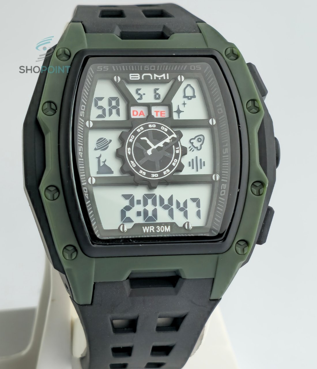 FUNCTIONS: alarm, stopwatch, day, date, time, month.